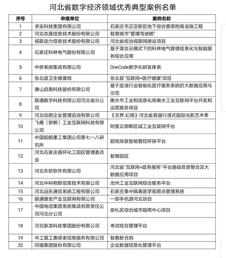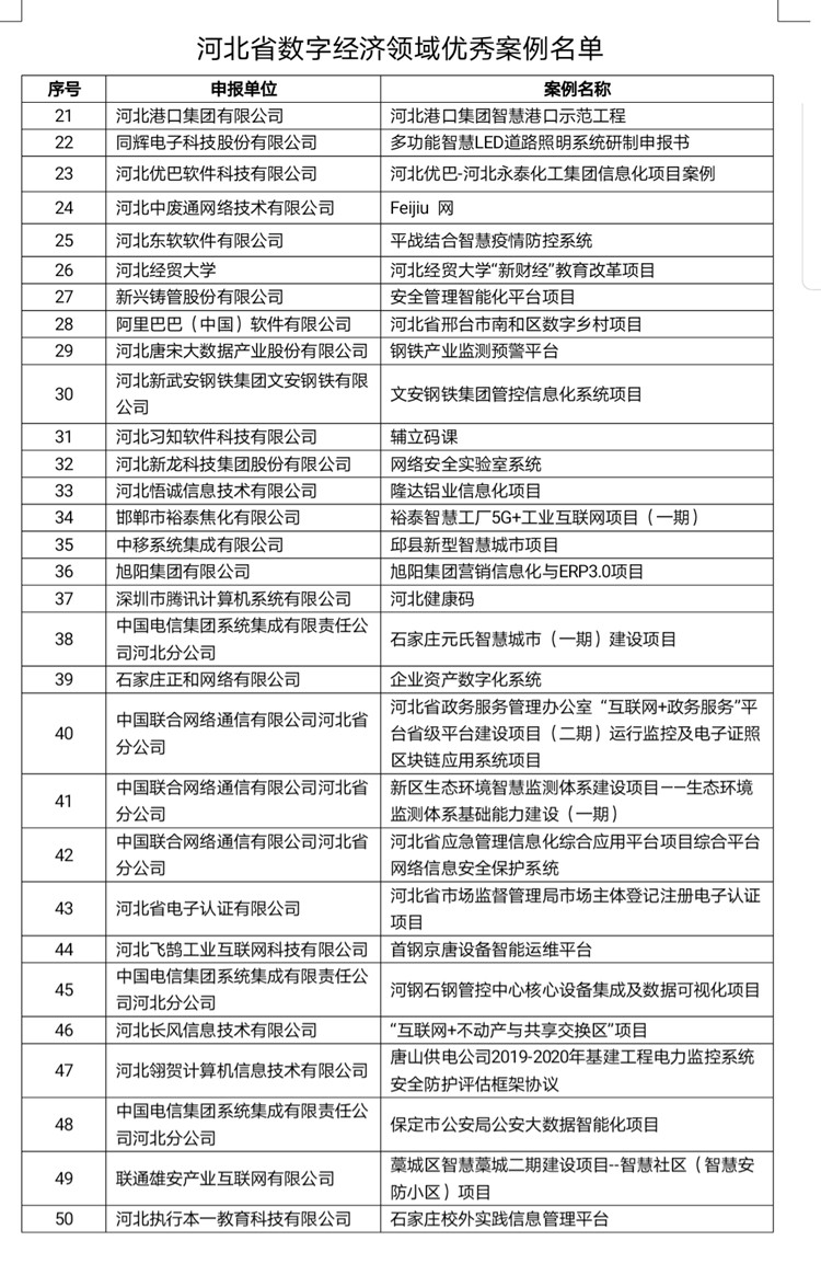 关于“2021年河北省数字经济领域优秀案例评选结果”的公示