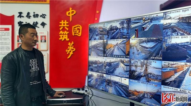 图为石头坑村村干部张庆军正在通过数字乡村平台监控村内公共区域的实时动态。中国联通供图