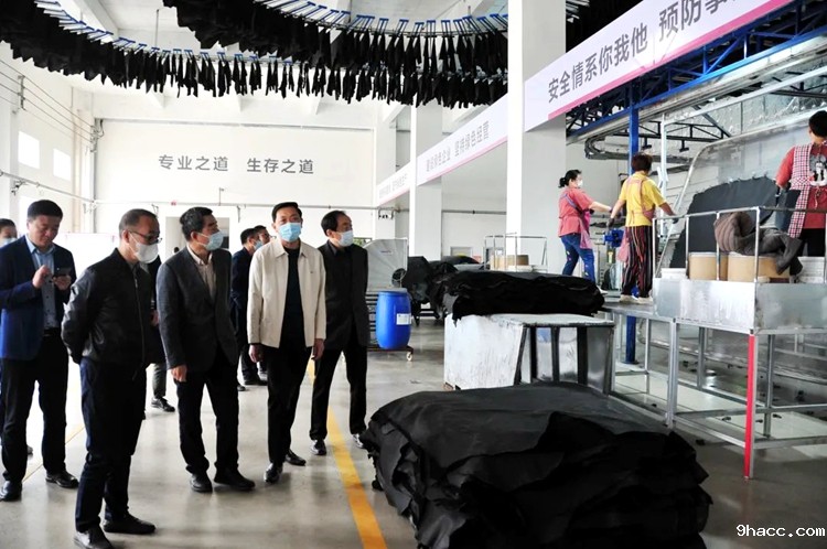 调研组一行在无极皮革后整循环经济产业园参观考察了园区入驻企业的皮革生产车间、皮革检测实验室,了解了园区的建设内容及产业布局。