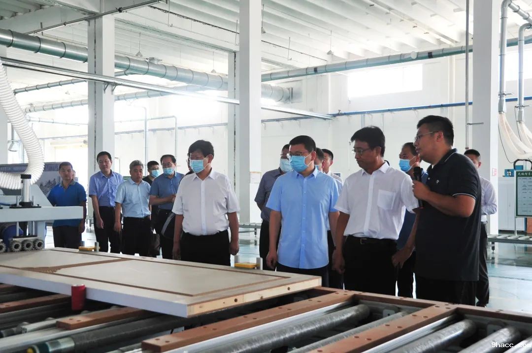 在鸿瑞装饰材料产业园,调研组一行先后参观了无极门业产业数字化平台和绿色共享门业智能制造工厂,考察了门业装配及喷涂等环节的数字化工艺流程,详细了解了装饰材料产业数字化转型情况以及园区整体规划情况。