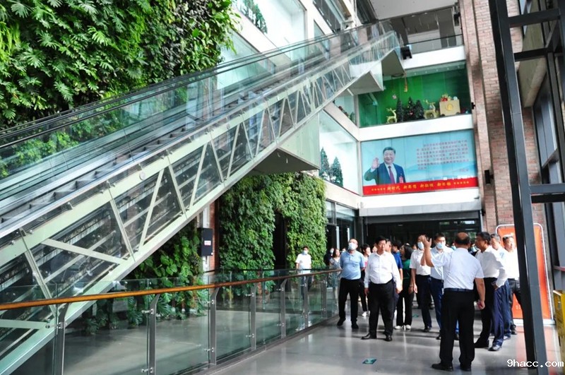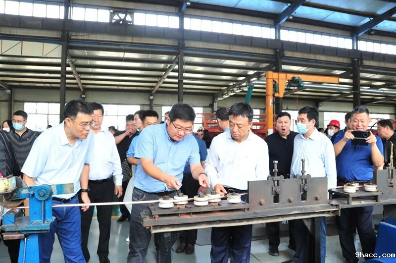 在宁联集团参观生产车间,了解企业生产经营状况。